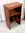 wooden bookcase with a reddish-brown stain. odd uneven openings
