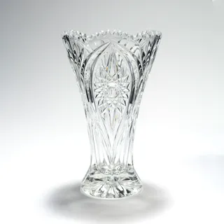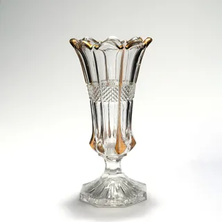 Stemmed and Fluted Crystal Clear Flower Vase with Gold Edging detail