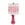 Bold Pink Ceramic Stacked ball lamp with vertical pink striped lampshade with ruffles on the top and bottom
