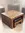 1970s Solid Wood Square Waterfall Coffee Table with a faux tortoiseshell finish with matching black leather stool